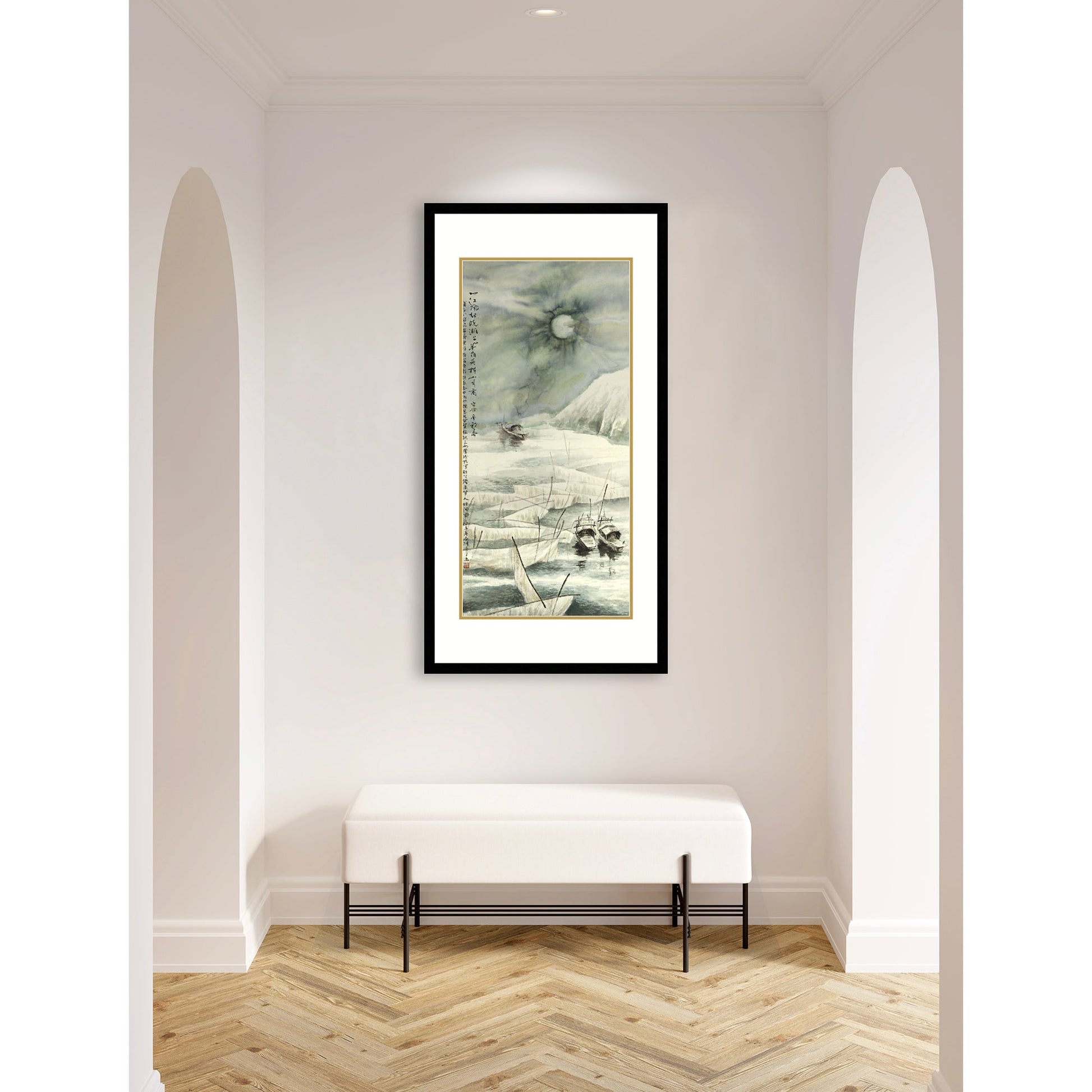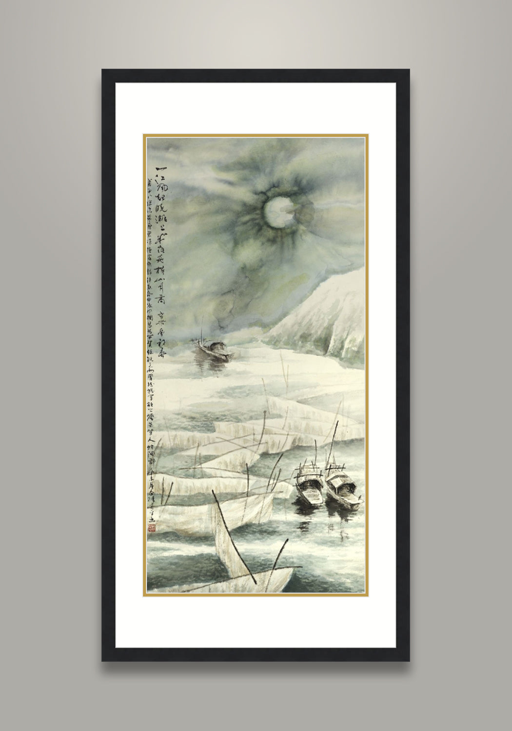 關於作品: 寂靜歸來處,一輪明月相伴。月色歸舟,舟中對月。月色清清,悠然自在 。