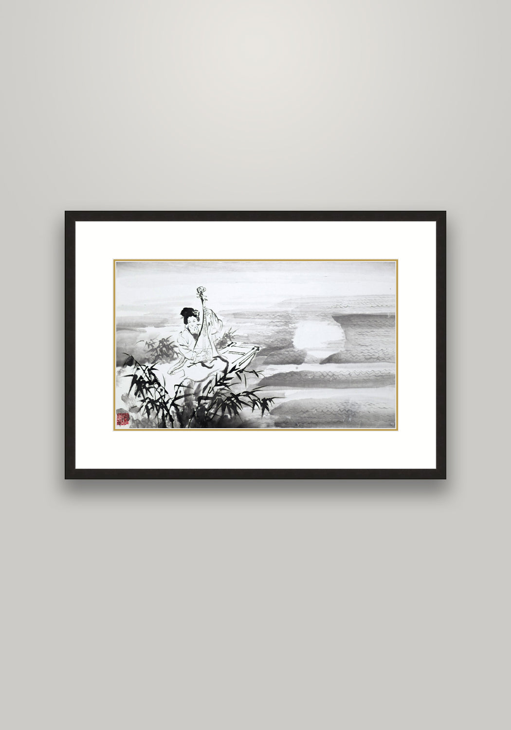 關於作品:在我們的文化裡,琵琶不只是樂器,它更是情感的橋樑和歷史的記錄者。在月色中的小舟裡,女子彈撥著琵琶,低聲吟唱一首古老的旋律。月光下,江面泛起溫柔的漣漪,似乎也在跟隨著琵琶的節奏起舞。