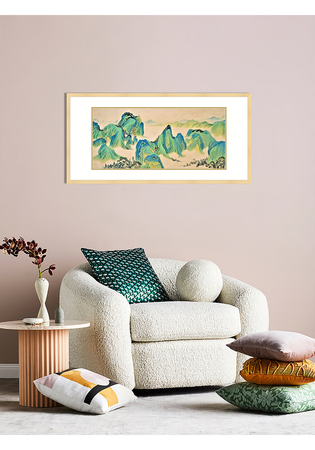 關於作品: 遼闊通天的山水聖境,山青雲白,樓閣掩映,高塔聳峰巔,那是覺者的家鄉。雲山茫茫盼望著歷經凡塵磨難的法王早日完成使命回返天鄉。