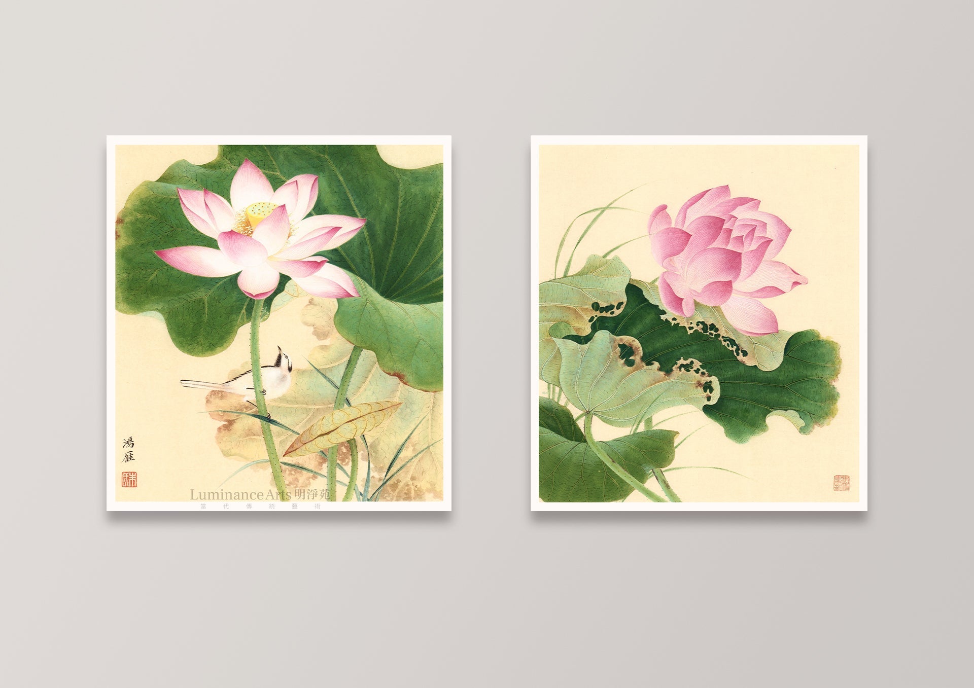 尺寸:《荷風一》12" x 12" (30cm x 30cm);《荷風二》12" x 12" (30cm x 30cm)。