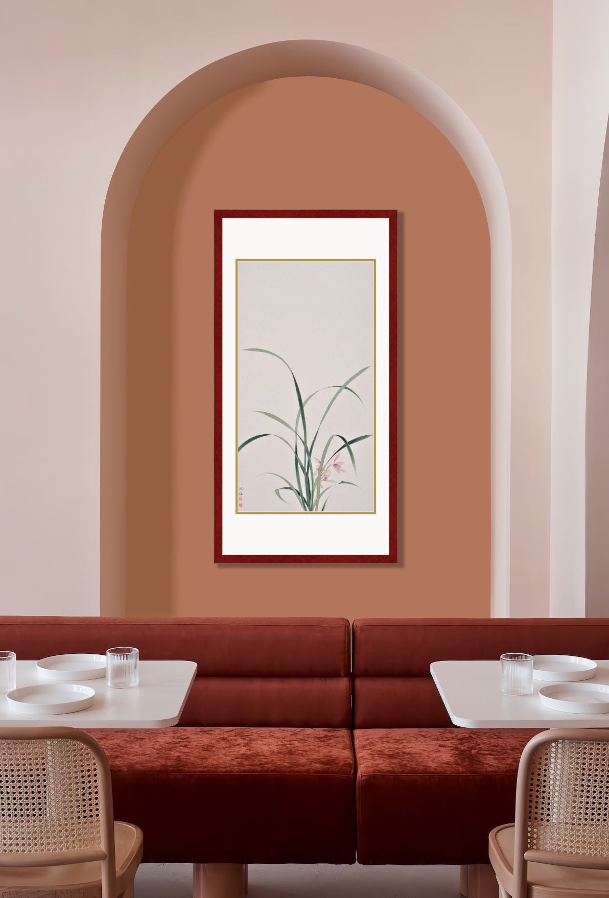 關於作品: 此圖為設色重彩畫法,著重體現蘭花優雅而莊重的氣質。