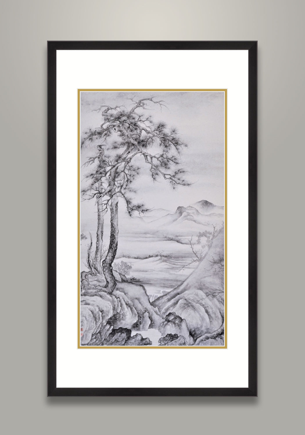 關於作品:此圖原跡傳為北宋李成所作,平遠構圖,空間清遠,筆墨精到,意境高古。但因原圖嚴重不清晰,殘損發暗,許多細節已不能察,然吾愛其境界清遠,雙鬆有真意,故吾變